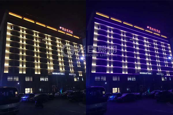 MANHATTAN酒店管理集團(tuán)旗下的曼哈頓酒店是四星級(jí)標(biāo)準(zhǔn)的商務(wù)酒店,上海王小姐憑借她們公司實(shí)力及酒店亮化經(jīng)驗(yàn),在多個(gè)招投標(biāo)項(xiàng)目中使用光臣照明的燈具贏得了好幾個(gè)四星級(jí)連鎖酒店的亮化施工權(quán),本次曼哈頓酒店亮化選用了光臣照明新推出的兩款LED洗墻燈以及排水結(jié)構(gòu)的LED線條燈作為酒店亮化的主要燈具。