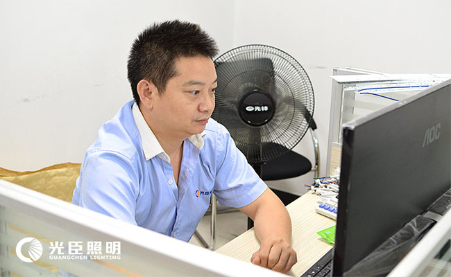 在公司里總能看見他忙碌的身影,一會來客戶咨詢、一會到測驗(yàn)室測試燈具、更多的是坐在電腦面前研發(fā)改良產(chǎn)品,夏工對產(chǎn)品熟悉是因?yàn)楣獬颊彰魉械臒艟叨际峭ㄟ^夏工去設(shè)計(jì)電路、檢驗(yàn)用料等,摸爬滾打20年,每一道生產(chǎn)工藝他都了如指掌。所以對于燈具的性能、調(diào)試等各方面技術(shù)問題他都能迎刃而解。