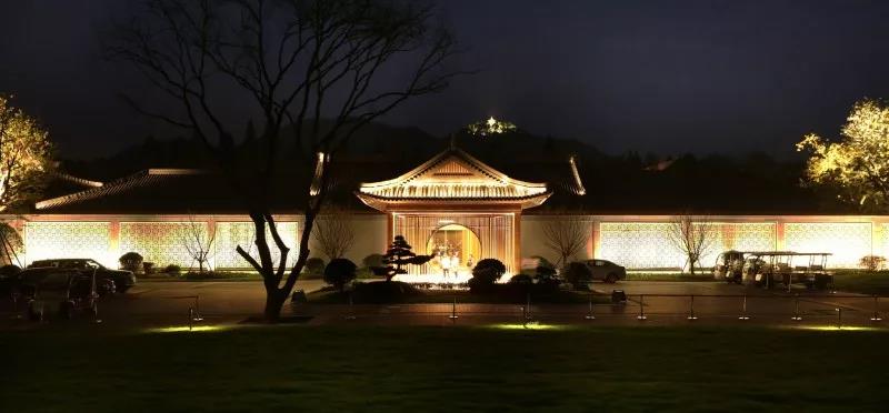 景觀照明結(jié)合人類(lèi)的心理特征,接下來(lái)將從“外圍——入口——內(nèi)部”三大元素解讀西湖國(guó)賓館的夜景照明。